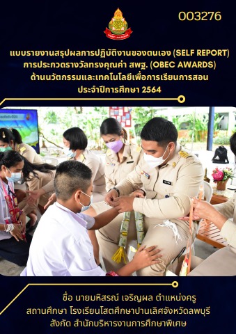 แบบรายงานสรุปผลการปฏิบัติงานของตนเอง (Self report) การประกวดรางวัลทรงคุณค่า สพฐ. (OBEC Awards) ด้านนวัตกรรมและเทคโนโลยีเพื่อการเรียนการสอน ประจำปีการศึกษา 2564