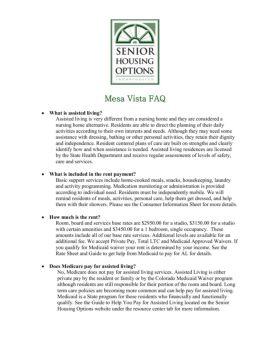Mesa Vista FAQ What is assisted living? Assisted living is very different from a nursing home and they are considered a nursing home alternative.