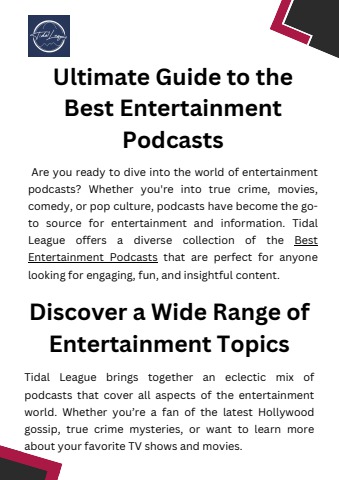 Discover the Ultimate Guide to the Best Entertainment Podcasts, your go-to resource for finding top shows that keep you entertained. From celebrity interviews to pop culture deep dives, this guide highlights must-listen podcasts across genres. Perfect for road trips, workouts, or relaxing evenings, these podcasts bring laughter, insights, and engaging stories. Start exploring today and elevate your listening experience with our expertly curated list of the best entertainment podcasts!