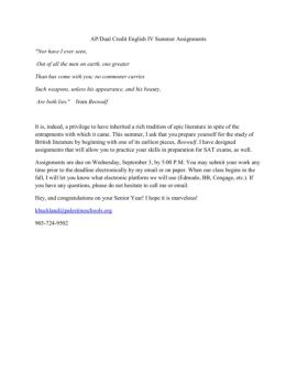 AP/Dual Credit English IV Summer Assignments