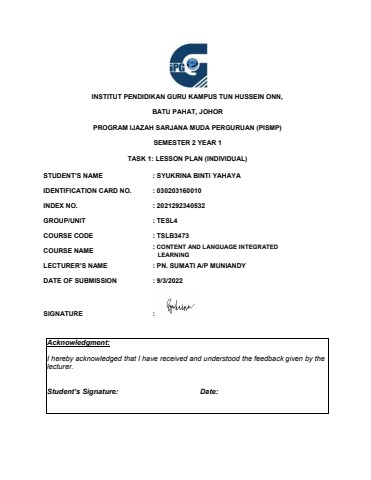 TSLB3473 Task 1 (Lesson Plan)