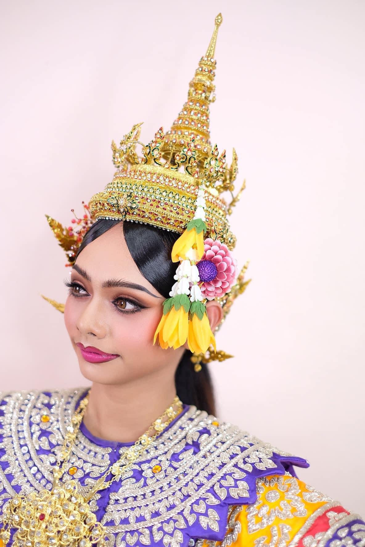 กกาารรแแต่ต่ ต่งต่งกกาายย 4.แบบราตรีรี รีสรีโมสร ชาย นุ่งกางเกง สวมเสื้อพระราชทาน ผ้าคาดเอวห้อยชายด้านหน้า หญิง นุ่งกระโปรงยาวจีบหน้านาง ใส่เสื้อจับเดรป ชายผ้าห้อยจากบ่าลงไป ทางด้านหลังเปิดไหล่ขวา ศีรษะทำ ผมเกล้า