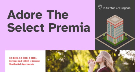 Adore The Select Premia Sector 77 is a newly launched luxurious residential project in Gurugram. The project is offering 2.5 BHK, 3.5 BHK, 3 BHK + Servant and 4 BHK + Servant Residential Apartments.