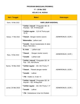 PROGRAM MINGGUAN Pekan 3 Mei 2 Al-Hudaa