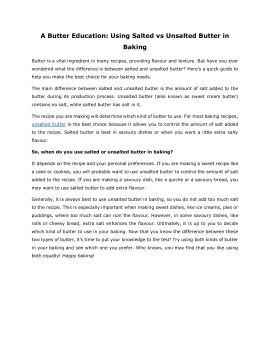 Butter is a vital ingredient in many recipes, providing flavour and texture. But have you ever wondered what the difference is between salted and unsalted butter? Here's a quick guide to help you make the best choice for your baking needs.