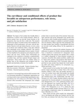 ORIGINAL EMPIRICAL RESEARCH The curvilinear and conditional effects of product line breadth on salesperson performance, role stress, and job satisfaction
