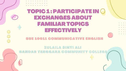 SUE10011 1.0 PARTICIPATE IN EXCHANGES ABOUT FAMILIAR TOPICS