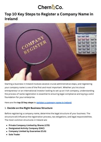 Here are the top 10 key steps to register a company name in Ireland: