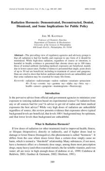 Radiation Hormesis: Demonstrated, Deconstructed, Denied, Dismissed, and Some Implications for Public Policy JOELM.KAUFFMAN Professor of Chemistry Emeritus