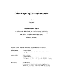 Gel casting of high strength ceramics By Xu Guo Diploma work No. 75/2011 at Department of Materials and Manufacturing Technology CHALMERS UNIVERSITY OF TECHNOLOGY