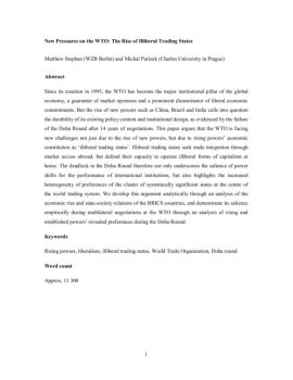 1 New Pressures on the WTO: The Rise of Illiberal Trading States Matthew Stephen (WZB Berlin) and Michal Parízek (Charles University in Prague)