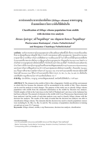 ตีพิมพ์งานวิจัยเรื่องการจำแนกประชากรปลาเห็ดโคนจากกระดูกหูด้วยเทคนิคการวิเคราะห์ต้นไม้ตัดสินใจ