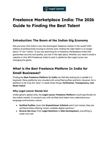Looking for the Best Freelance Platform In India? Join Legal Lancer to Hire SEO Freelancer India, web developers, and legal experts. Verified talent & secure hiring.