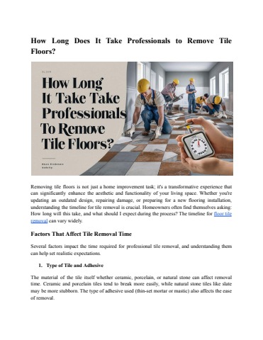 Curious about tile floor removal? Discover how long professionals typically take, factors that affect timing, and what to expect during the process.