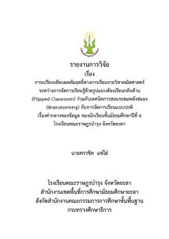 การเปรียบเทียบผลสัมฤทธิ์ทางการเรียนรายวิชาคณิตศาสตร์ ระหว่างการจัดการเรียนรู้ด้วยรูปแบบห้องเรียนกลับด้าน (Flipped Classroom) ร่วมกับเทคนิคการสอนระดมพลังสมอง (Brainstorming) กับการจัดการเรียนแบบปกติ เรื่องค่ากลางของข้อมูล ของนักเรียนชั้นมัธยมศึกษาปีที่ 6