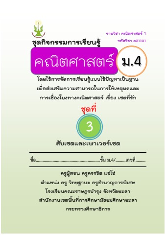 ชุดกิจกรรมการเรียนรู้คณิตศาสตร์ เรื่องเซตที่รัก ชุดที่ 3 สับเซต