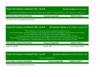 TWENTY-FIFTH SUNDAY IN ORDINARY TIME—YEAR B Entrance Antiphon (Sacramentary) “I am the Savior of all people, says the Lord. Whatever their troubles, I will answer ...