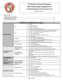 Page 1 of 25 Table of contents: Congenital Diagnoses (by category ...