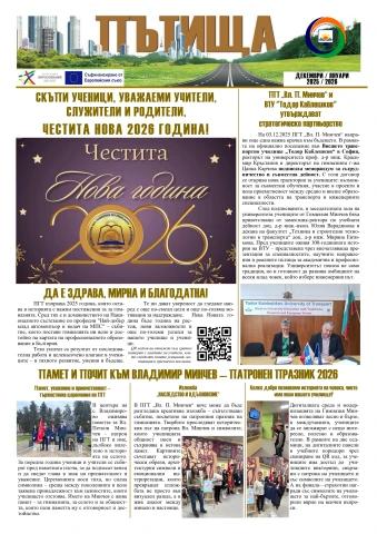 Вестник "ПЪТИЩА" ПГТ "Вл. П. Минчев";. Издание за ДЕКЕМВРИ 2025 и ЯНУАРИ 2026. Този брой е събран и се издава от клуб "Млад журналист";, рък. З. Венелинова. Редактор и оформител З. Карчева