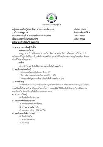 แผนการจัดการเรียนรู้ วิชาสังคมศึกษา ศาสนา และวัฒนธรรม