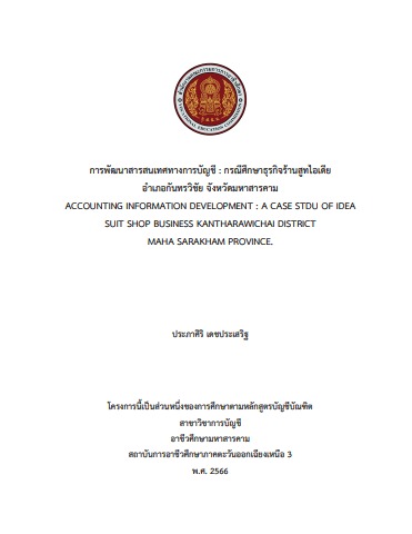 การพัฒนาสารสนเทศทางการบัญชี : กรณีศึกษาธุรกิจร้านสูทไอเดีย อำเภอกันทรวิชัย จังหวัดมหาสารคาม