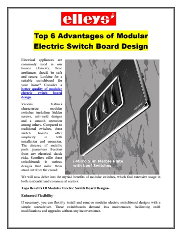 Top 6 Advantages of Modular Electric Switch Board Design