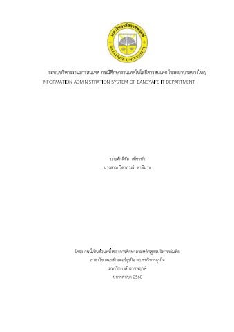 ระบบบริหารงานสารสนเทศ กรณีศึกษางานเทคโนโลยีสารสนเทศ โรงพยาบาลบางใหญ่