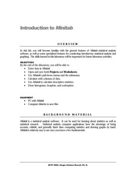 SFFP 2000, Ginger Holmes Rowell, Ph. D. Introduction to Minitab OVERVIEW In this lab, you will become familiar with the general features of Minitab statistical analysis