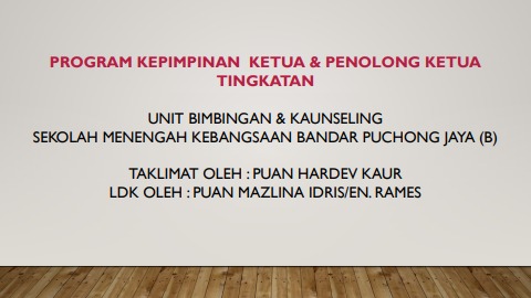 Taklimat Ketua Tingkatan & Penolong Ketua Tingkatan