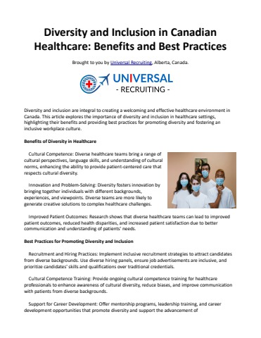 Diversity and Inclusion in Canadian Healthcare Benefits and Best Practices