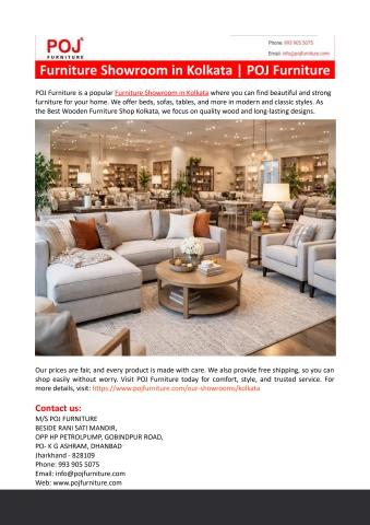 POJ Furniture is a trusted Furniture Showroom in Kolkata offering strong and stylish furniture. As the Best Wooden Furniture Shop Kolkata, we provide quality products at good prices with free shipping for every customer. For more details, visit: https://www.pojfurniture.com/our-showrooms/kolkata