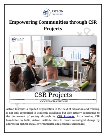 Explore impactful CSR projects by Astron Institute, a leading CSR foundation in India. From education and healthcare to women empowerment and environmental sustainability, discover how we are creating positive change for a brighter and more inclusive future. Visit at: https://www.astroninstitute.com/csr