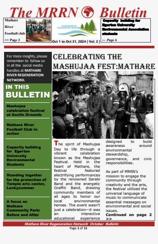 This magazine consists some of the activities conducted by Mathare River Regeneration Network in the month of October, 2024