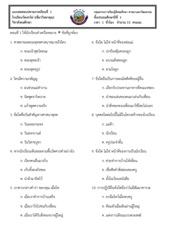 ข้อสอบปลายภาคเรียนที่ 1 สังคม ป.1 ปี 65