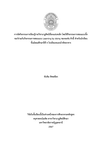 การจัดกิจกรรมการเรียนรู้รายวิชานาฏศิลป์เรื่องแม่บทเล็ก โดยใช้กิจกรรมการสอนแบบจิ๊ก ซอว์ร่วมกับกิจกรรมการสอนแบบ Learning by doing ของจอห์น ดิวอี้ สำหรับนักเรียน ชั้นมัธยมศึกษาปีที่ 4 โรงเรียนหนองบัวพิทยาคาร