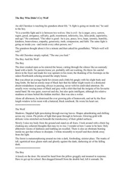 The Boy Who Didn’t Cry Wolf An old Cherokee is teaching his grandson about life. "A fight is going on inside me," he said to the boy. "It is a terrible fight and it ...