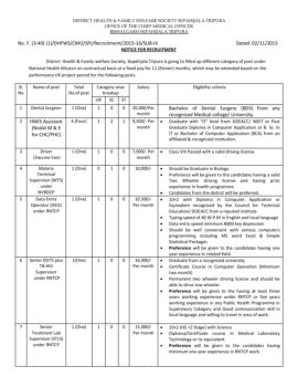 FORMAT Ref. No. F. (3-40) (1)/DHFWS/CMO/SPJ/Recruitment/2015-16/SUB-III dated: 02/11/2015 To The Executive Secretary District Health & Family Welfare Society