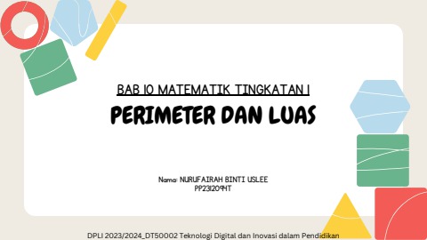Nota Pembelajaran Matematik Tingkatan 1 Bab 10 Perimeter dan luas