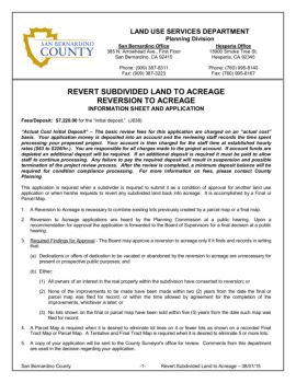 San Bernardino County -2- Revert Subdivided Land to Acreage 6. When road dedication is a condition of approval, dedication may be made on the Parcel Map or Tract Map.