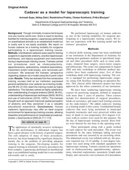 Cadaver model for laparoscopic training 112 Indian Journal of Gastroenterology 2005 Vol 24 May - June Supe, Dalvi, Prabhu, Kantharia, Bhuiyan