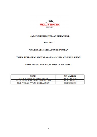 PERPADUAN MASYARAKAT MALAYSIA MENERUSI SUKAN KUMPULAN ,2