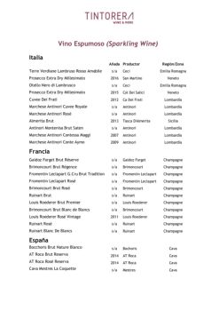 Carta de Vinos Tintorera mayo 2017