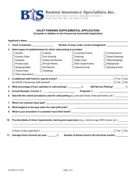 VALET PARKING SUPPLEMENTAL APPLICATION - bis-ins.com