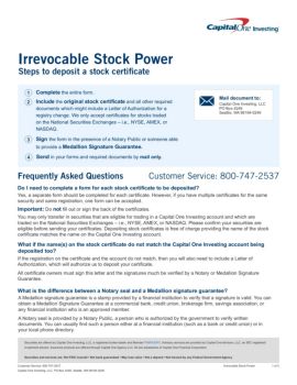 Irrevocable Stock Power 1 of 3 Irrevocable Stock Power 1 2 Mail document to: ... Depositing stock certificates is free of charge providing the name of the stock