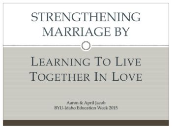LEARNING TO LIVE TOGETHER IN LOVE STRENGTHENING MARRIAGE BY Aaron & April Jacob BYU-Idaho Education Week 2015