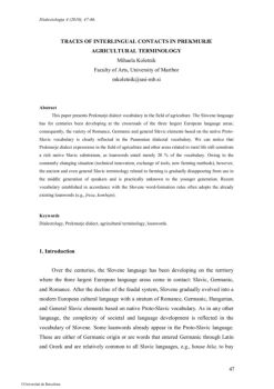 Dialectologia 4 (2010), 47-66. 47 TRACES OF INTERLINGUAL CONTACTS IN PREKMURJE AGRICULTURAL TERMINOLOGY Mihaela Koletnik Faculty of Arts, University of Maribor