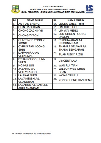SENARAI NAMA MURID TINGKATAN 1 DAN PERALIHAN 2023