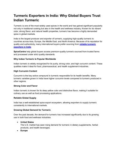 SpiceCentra is one of the trusted turmeric exporters in India supplying premium quality turmeric to importers in the USA, Europe, UAE, Saudi Arabia and other international markets.