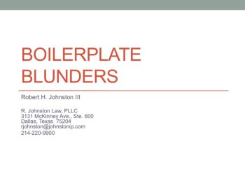 BOILERPLATE BLUNDERS Robert H. Johnston III . R. Johnston Law, PLLC 3131 McKinney Ave., Ste. 600 Dallas, Texas 75204