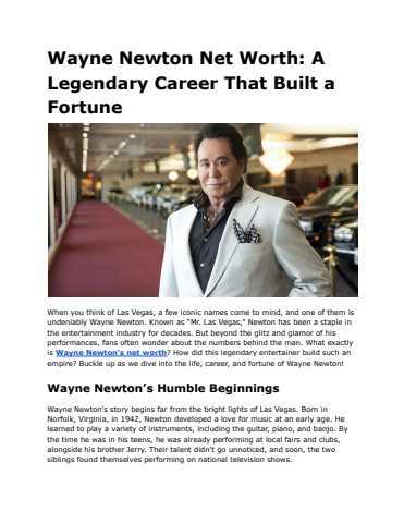 When you think of Las Vegas, a few iconic names come to mind, and one of them is undeniably Wayne Newton. Known as “Mr. Las Vegas,” Newton has been a staple in the entertainment industry for decades. But beyond the glitz and glamor of his performances, fans often wonder about the numbers behind the man. What exactly is Wayne Newton's net worth? How did this legendary entertainer build such an empire? Buckle up as we dive into the life, career, and fortune of Wayne Newton!